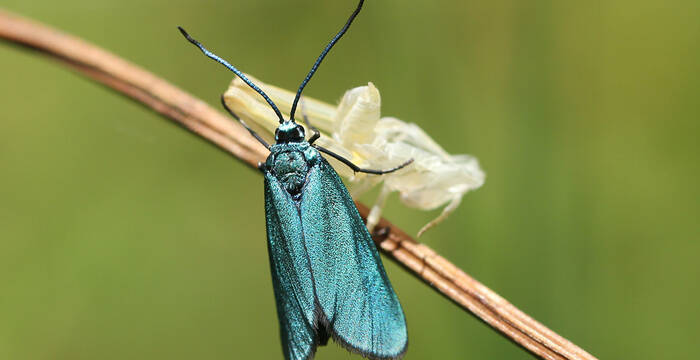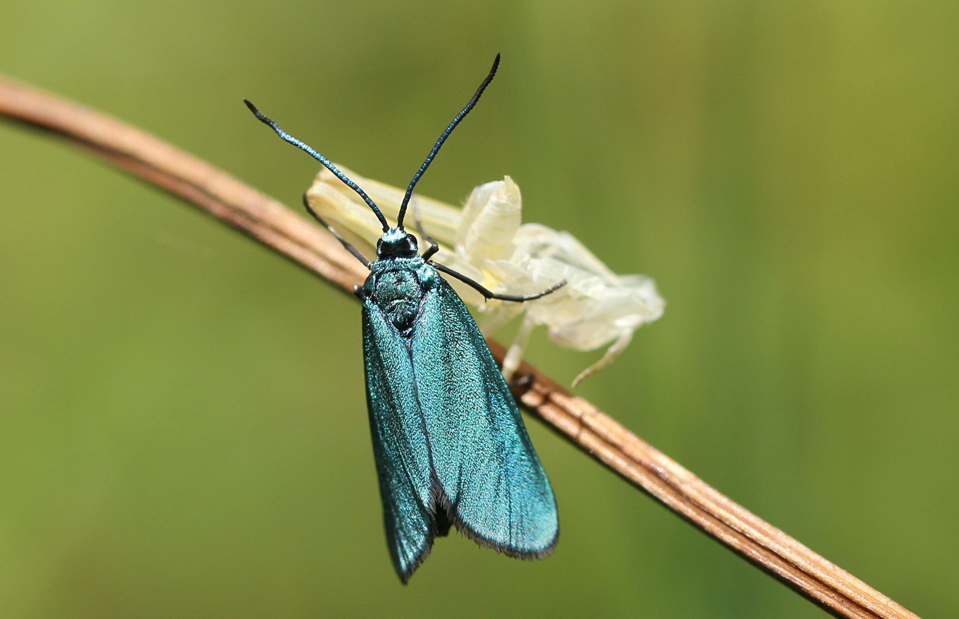 Flockenblumen- und Skabiosen-Grünwidderchen (Jordanita globulariae und J. notata)