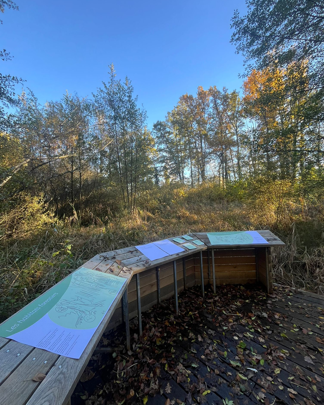 Inauguré en juin 2008, le sentier didactique est l'infrastructure en bois la plus importante en milieu naturel du canton de Genève. Il traverse une partie de la réserve naturelle de Mategnin les Crêts et s'était usé au fil des années si bien qu'un remplacement complet était devenu nécessaire. Après une recherche de fonds fructueuse, il ne restait plus qu'à trouver les ressources humaines nécessaires pour réaliser ce travail titanesque. Pro Natura Genève a pu compter sur la protection civile de Meyrin-Mandement et quelques bénévoles. Ils ont prêté main forte en automne 2021 ce qui a permis de rouvrir au public cette magnifique réserve en fin d'année. Nos efforts se portent à présent sur l'élaboration de nouveaux panneaux didactiques qui permettront de porter un regard neuf sur ce lieu exceptionnel et renseigneront sur les espèces que l'on peut y trouver. Cette partie didactique verra le jour en 2026.
